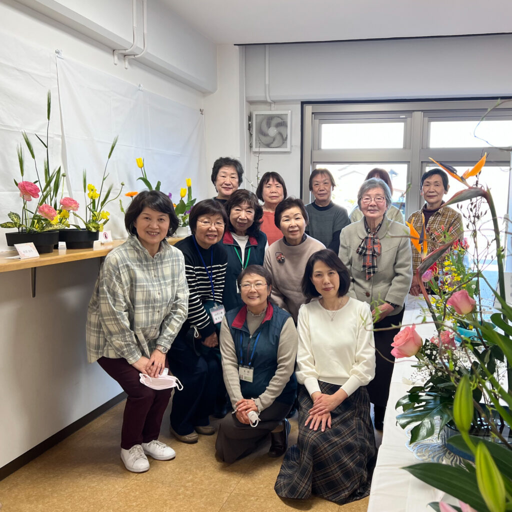 いけばなサークルは、多世代交流学習館で四季折々のお花を仲間たちと和気あいあいと生けています。