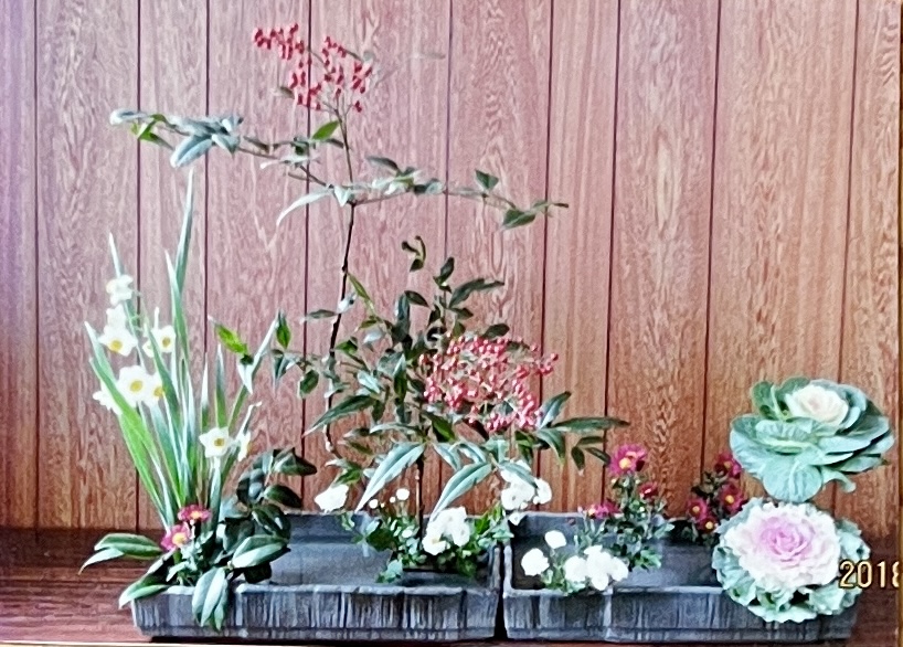 お花好きな仲間が月一回(第3水曜日)に集まって、身近にある木々や草花を取り込み、いけ花を楽しんでいます。